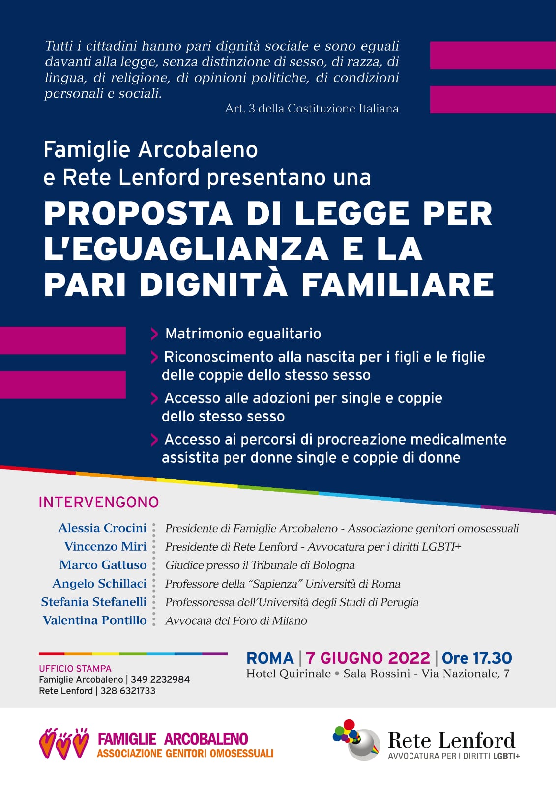 Dopo un lungo e intenso lavoro, Famiglie Arcobaleno e Rete Lenford sono orgogliose di presentare una proposta di legge per… Read More